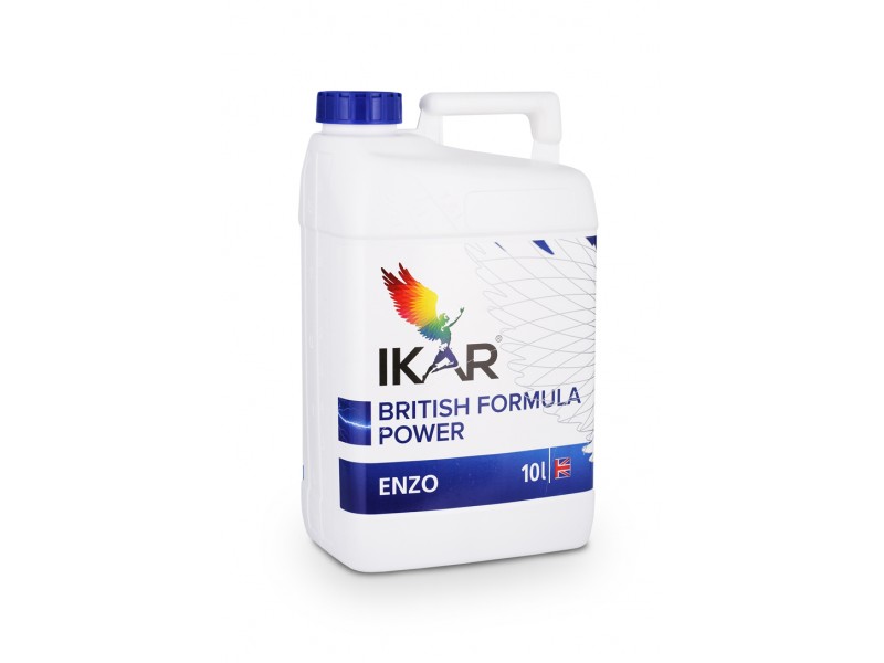 Ikar Enzo (N11+20Mn+1,2Zn+0,5Pro) – жидкое концентрированное удобрение с марганцем, цинком и аминокислотой L-пролин. Ikar Enzo – высококонцентрированное микроудобрение, основными составляющими которого является марганец (Mn), цинк (Zn) и аминокислота L- пролин. Марганец (Mn) в растениях активирует действие разных ферментов (или входит в их состав), которые имеют важное значение в окислительно-восстановительных процессах и играют ключевую роль в основных жизненно необходимых процессах растений, необходимых для образования хлорофилла и способствует усвоению молекулярного и нитратного азота. Участвуя в синтезе аскорбиновой кислоты в растениях, Марганец (Mn) повышает устойчивость культур к болезням. Сочетание в Ikar Enzo Марганца (Mn) и Цинка (Zn) способствует повышению интенсивности фотосинтеза и дыхания, улучшает синтез углеводов и перемещение их из листьев к органам плодоношения и корневой системы. Аминокислота L-пролин имеет антистрессовый эффект, способствует максимальному усвоению растениями микро и макро элементов